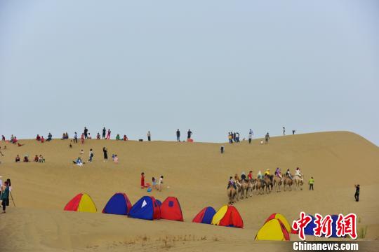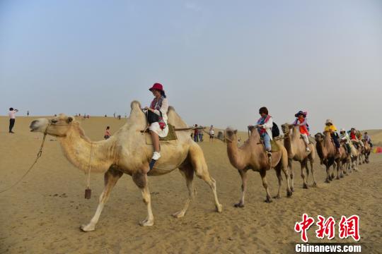 游客在沙漠中体验骑骆驼旅行。 庞博 摄